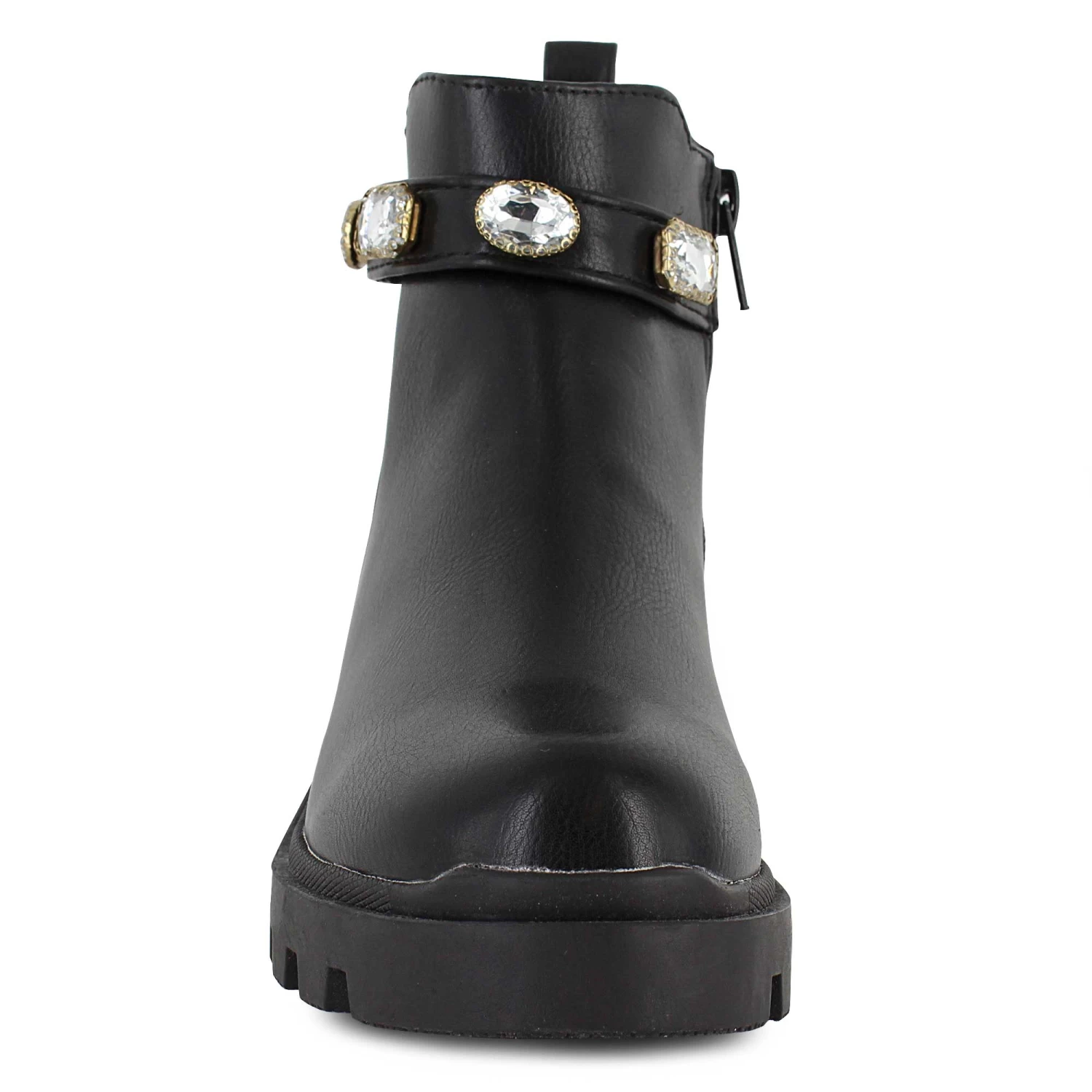 Shake up your look with a mix of pretty and tough. These Steve Madden ankle boots feature a simple silhouette construction with a striking rhinestone focus around the ankle. Wear them anytime you want to put an edge of fierce fashion into your day.