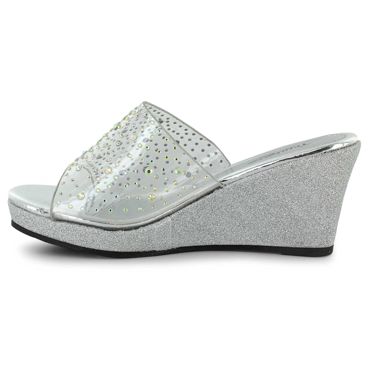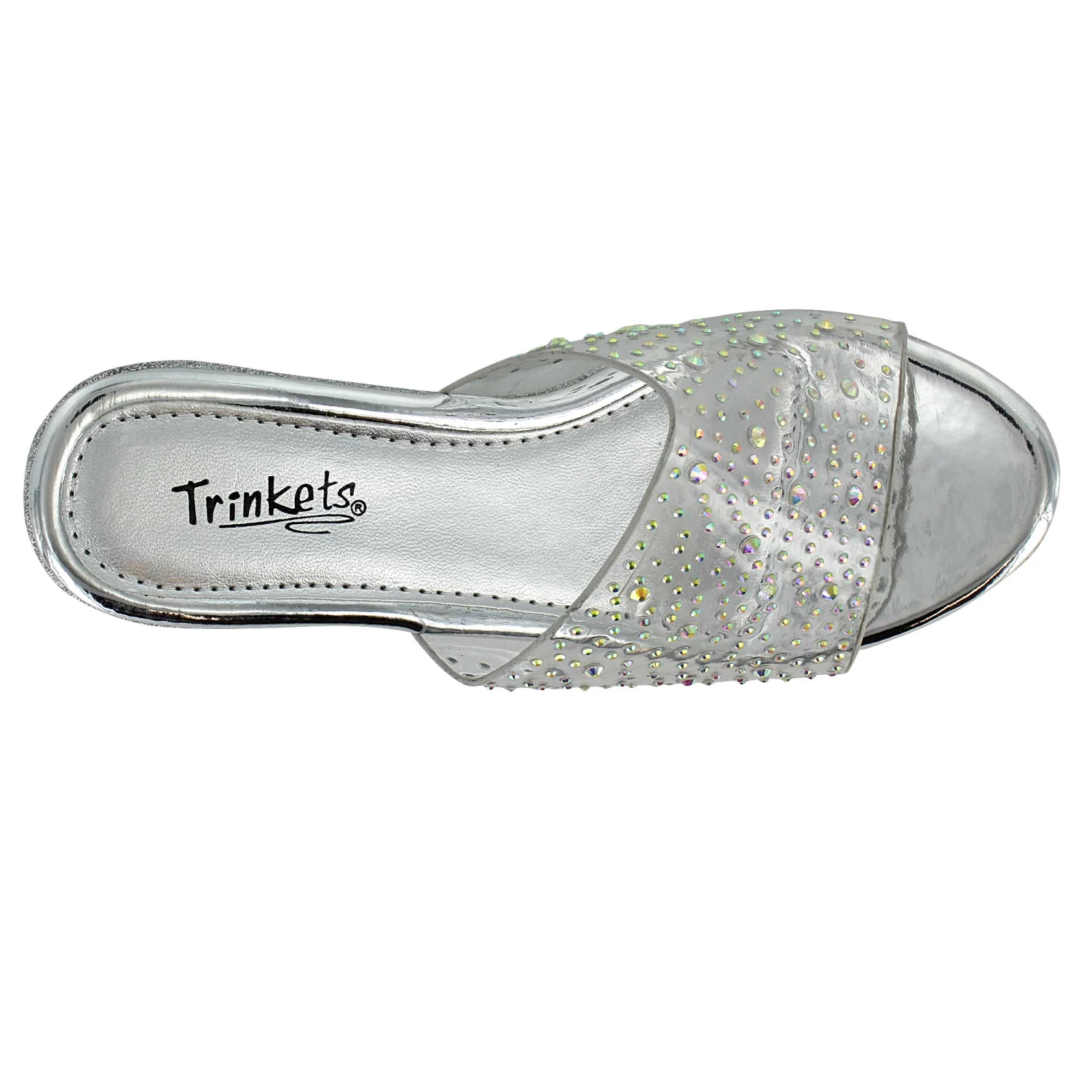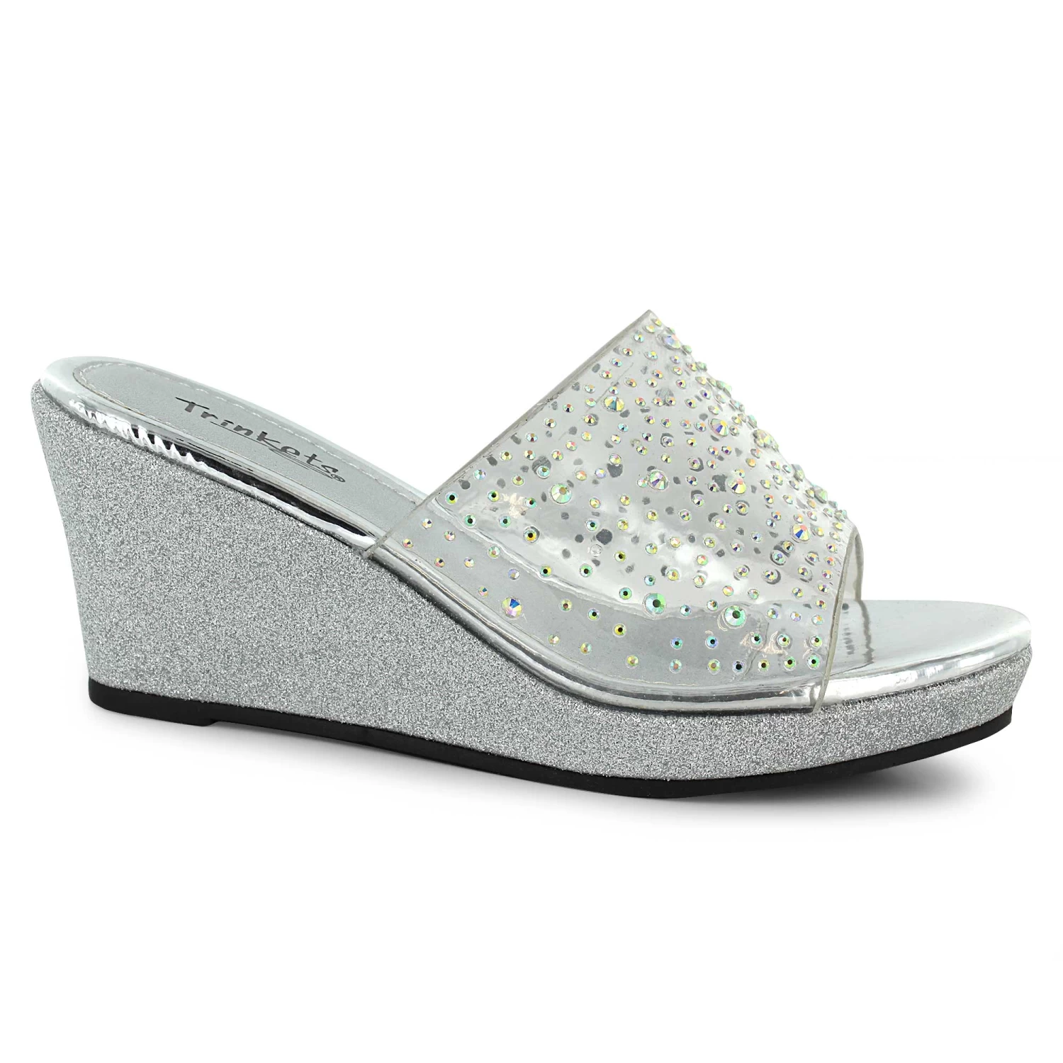 Look picture-perfect in these classy Trinkets dress wedges. The trendy clear upper features eye-catching crystals that pair great with any formal outfit. Add a bit of height with the 2 1/4-inch wedge heel that helps you stand out from the crowd.