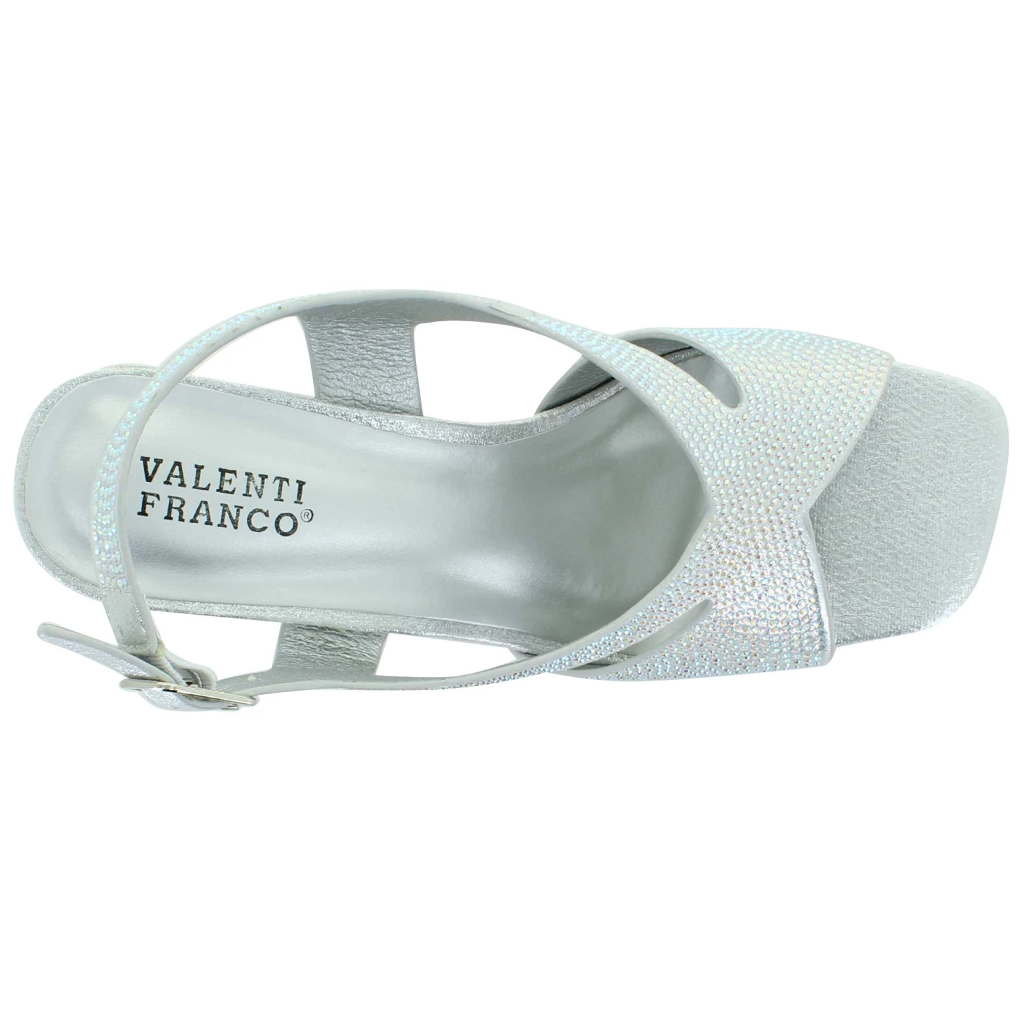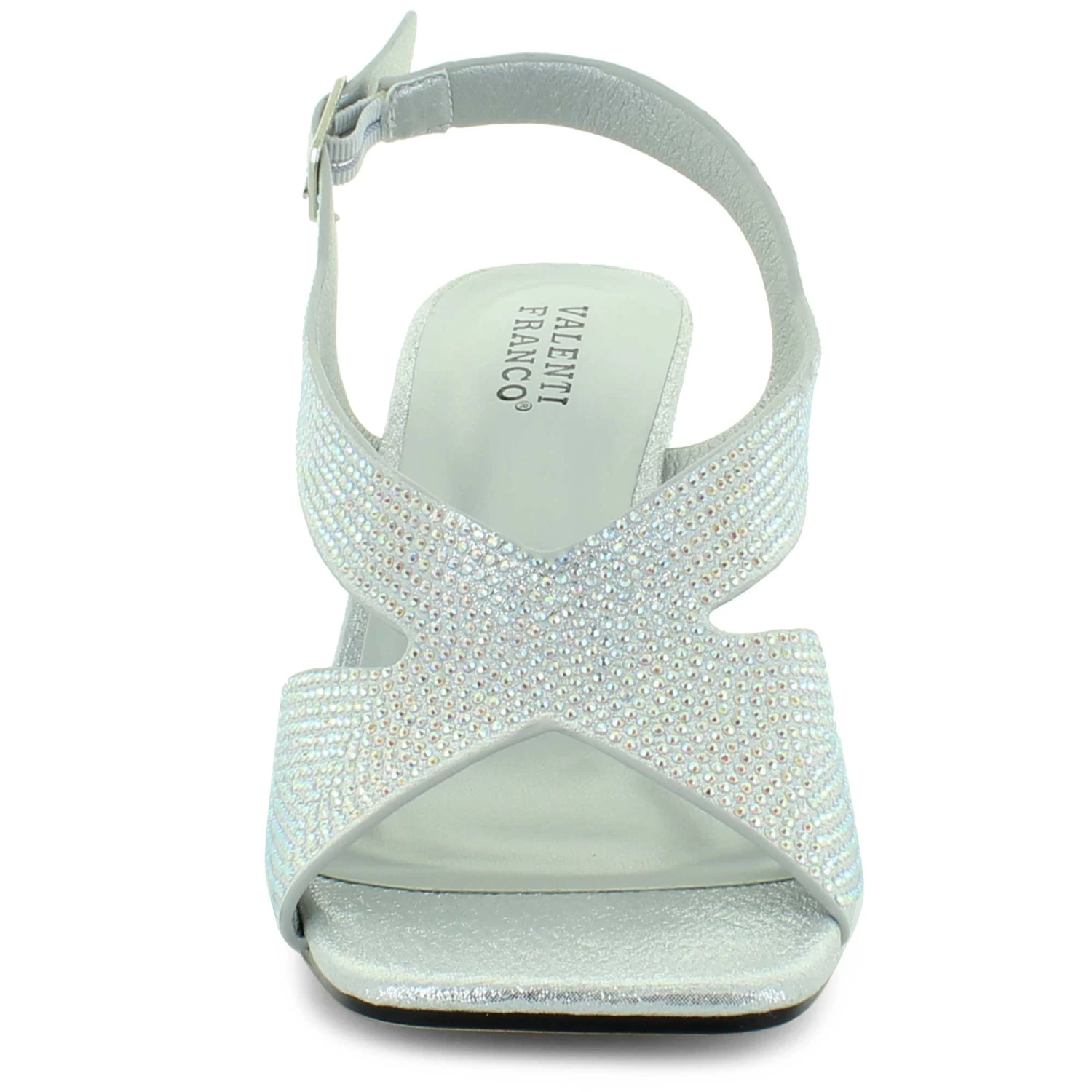 Add some sparkle and dazzle to your ensemble with this dress shoe by Valenti Franco. This style features a rhinestone upper with an open-toe construction. The side buckle closure will provide a safe and secure fit.