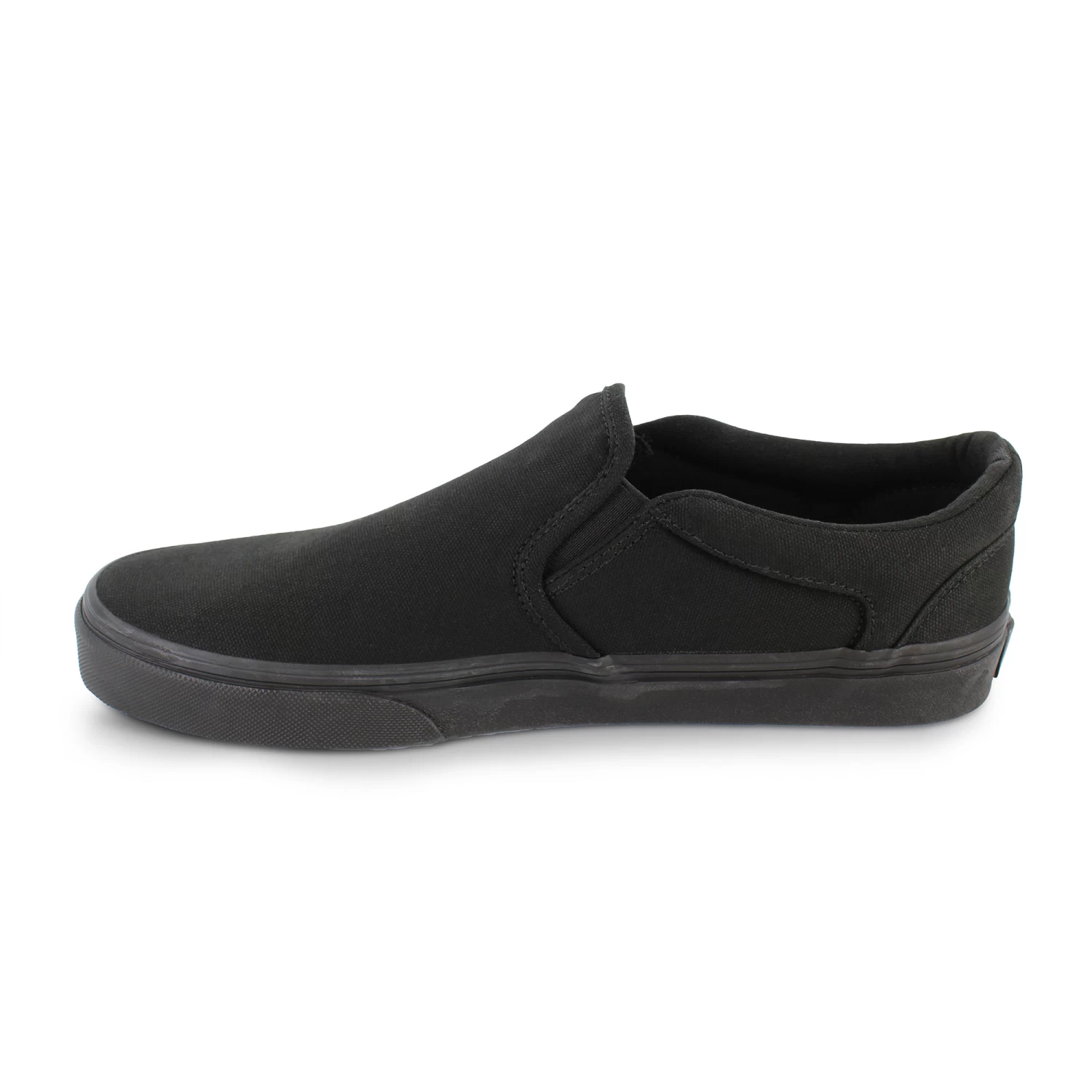 Slide into comfort and style with the Vans Asher. This sleek and sporty slip-on features an upper crafted from durable canvas and dual elastic goring for an easy on and off. A cushioned insole combined with Vans signature Waffle rubber outsole will keep your moving throughout the day.
