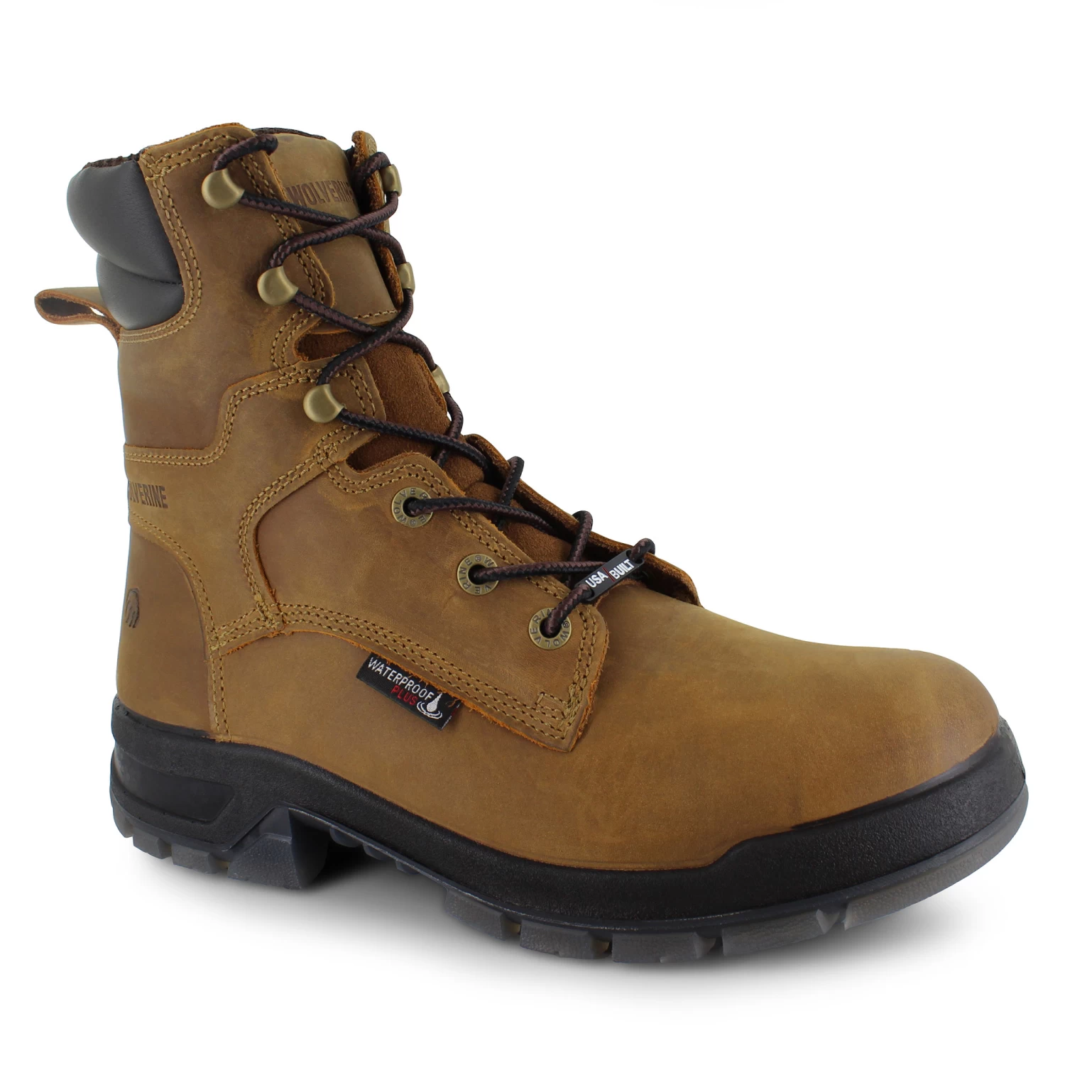 Engineered for the toughest workspaces, the Wolverine Ramparts 8″ is crafted from durable Waterproof Plus treated leather to create a work boot that’s ready for action. The 8″ boot shaft works in unison with a secure lace-up front closure to lock your foot in place while a padded collar and tongue offer additional support. Moisture-wicking mesh lining keeps your feet cool and dry while a removable DuraShocks dual-density footbed provides all-day support where your need it most. A lugged DuraShocks high-abrasion rubber outsole provides oil and slip-resistance and stability throughout your workday.
